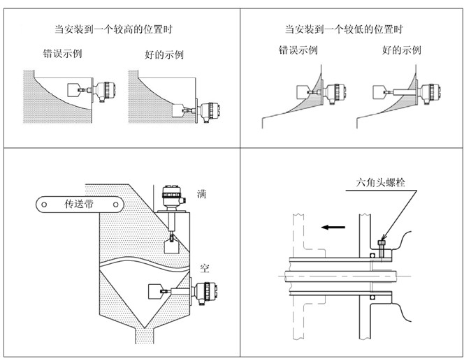※ 將阻旋料位開關(guān)安裝在粉末顆粒物料處于變化的位置處。